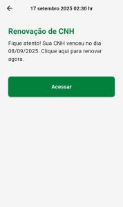 Neste mês de outubro, o aplicativo e o portal também passaram a notificar motoristas sobre o vencimento da Carteira Nacional de Habilitação (CNH). Foram enviadas 41.231 mensagens, sendo 25.352 para condutores com a CNH já vencida e o restante distribuído entre prazos de 30, 20 e 10 dias antes do vencimento.