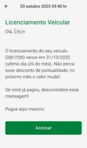 O envio das notificações será uma rotina de agora em diante, e visa reduzir a inadimplência e futuros envios desses débitos para inscrição em dívida ativa. Quem quita o licenciamento dentro do prazo garante o desconto de pontualidade; após o vencimento, o valor é acrescido, passando de 4,53 para 5,88 UFERMS. Considerando a cotação de outubro de 2025 (R$ 53,73 por UFERMS), o atraso representa R$ 71,19 a mais.
