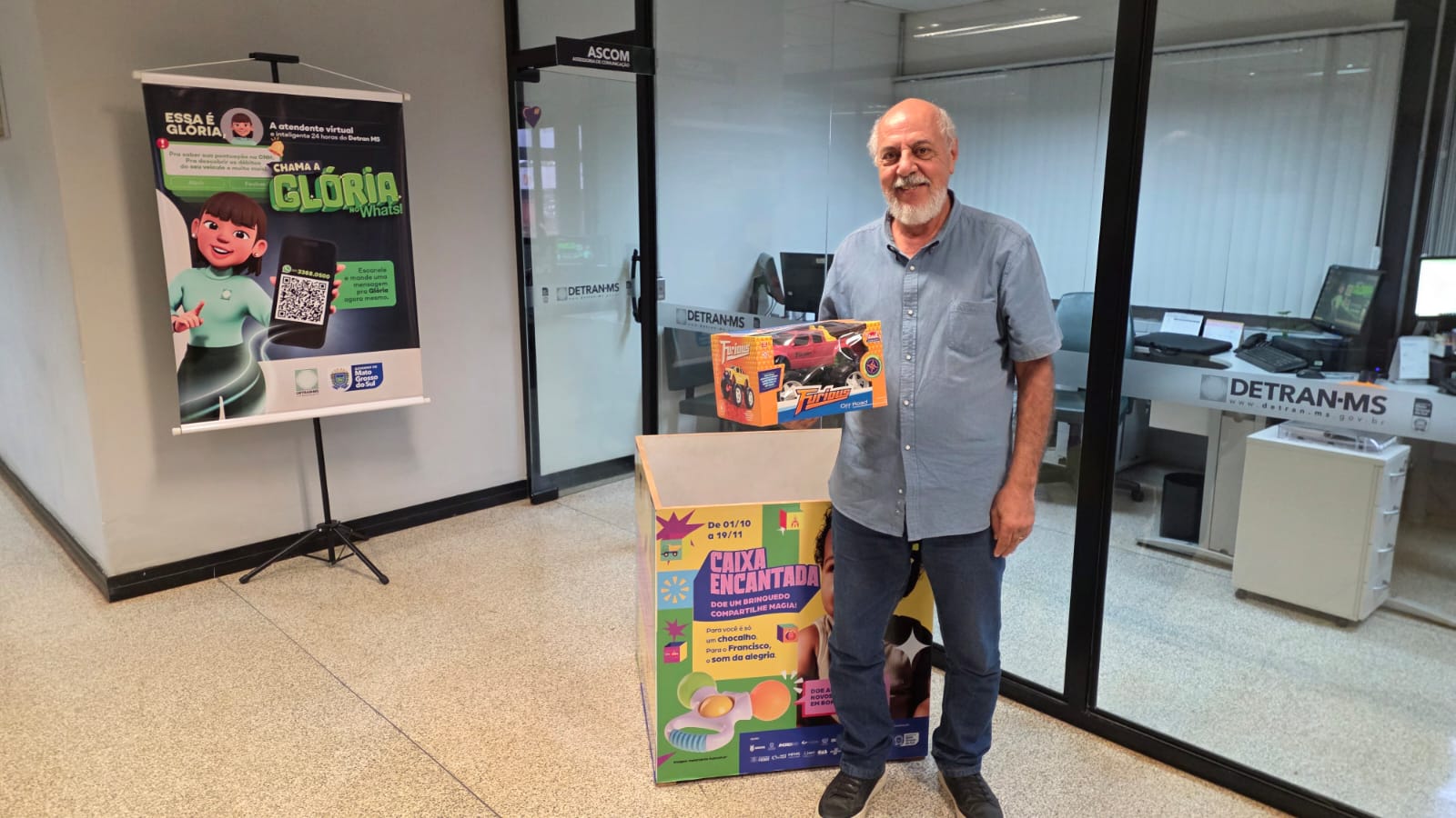 Aos 72 anos, o servidor Rachid Waqued, fotógrafo da equipe de comunicação do Detran-MS, faz questão de manter uma tradição: ser o primeiro a fazer sua doação, seja na campanha de natal ou na de inverno. Sem muito alarde, ele sempre se antecipa. No dia seguinte à instalação da caixa no bloco 9, já chegou com os brinquedos em mãos.