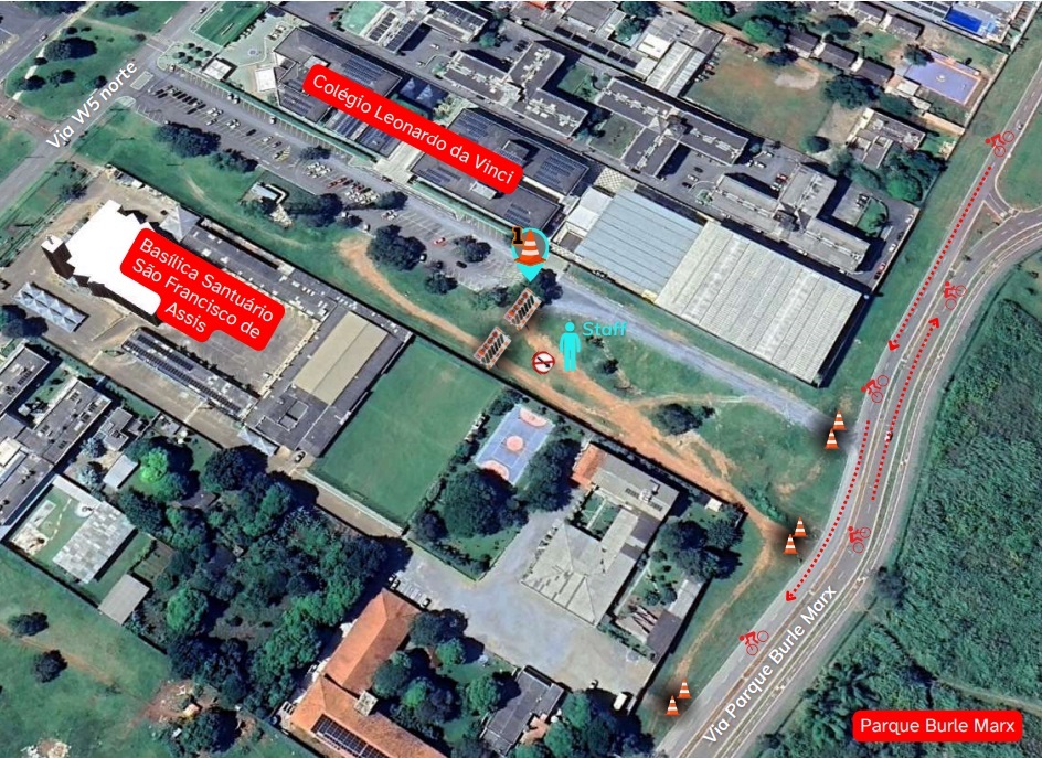 Nos dias do evento, a partir das 6h, os acessos à via contorno do Parque Burle Marx pela via W7 do Noroeste e pela via SRPN Trecho 1, na altura do Depósito do Detran-DF, serão fechados. Os acessos à via contorno, pela W5 Norte, nas proximidades da Ação Social Paula Frassinetti e do UniCeub, também serão bloqueados. A previsão é que o tráfego de veículos seja liberado às 14h. Durante o evento, os agentes do Detran-DF atuarão na região para garantir a fluidez e a segurança no trânsito.